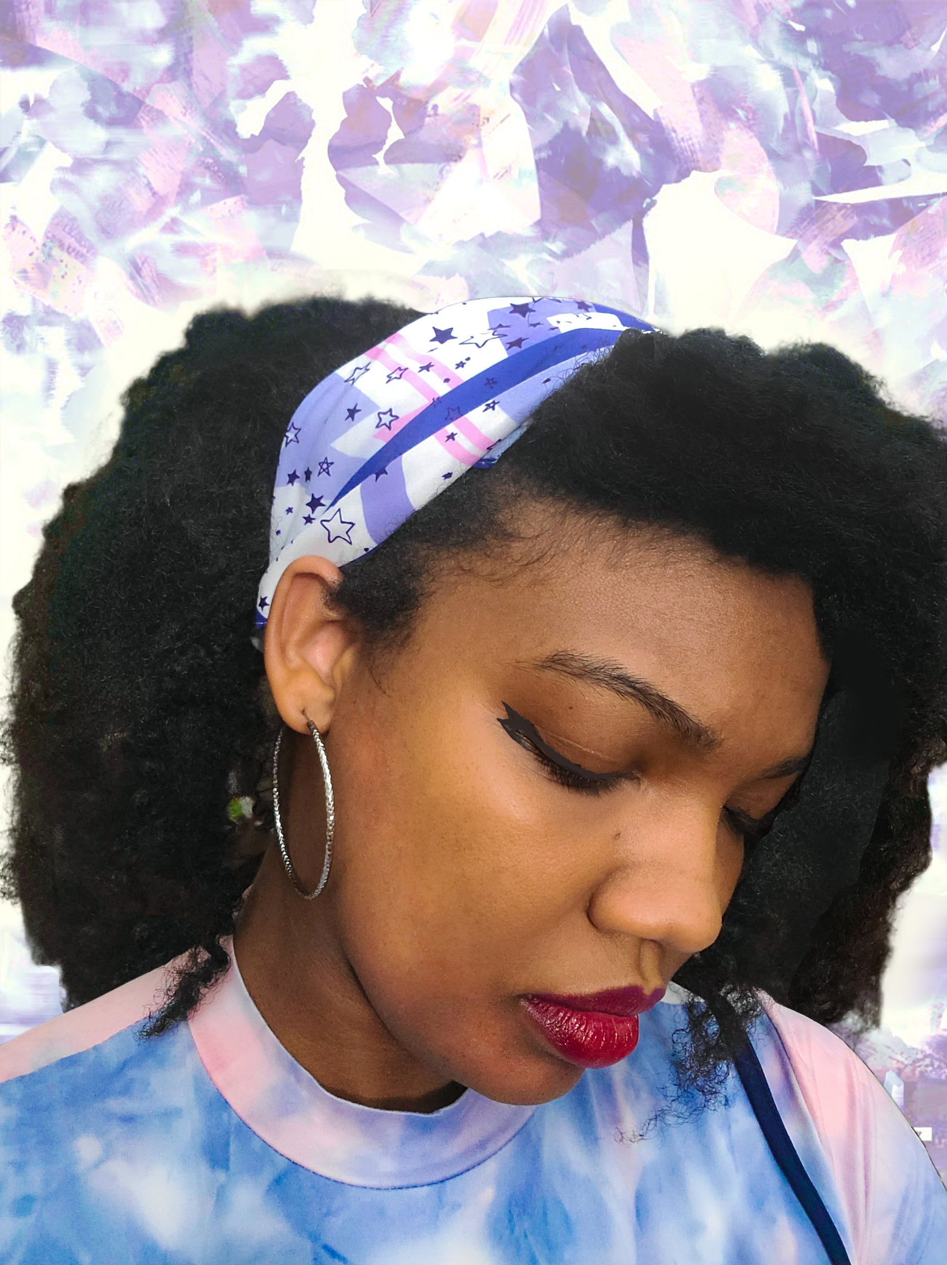 Add some space flair to your style with this colorful starry bandana!