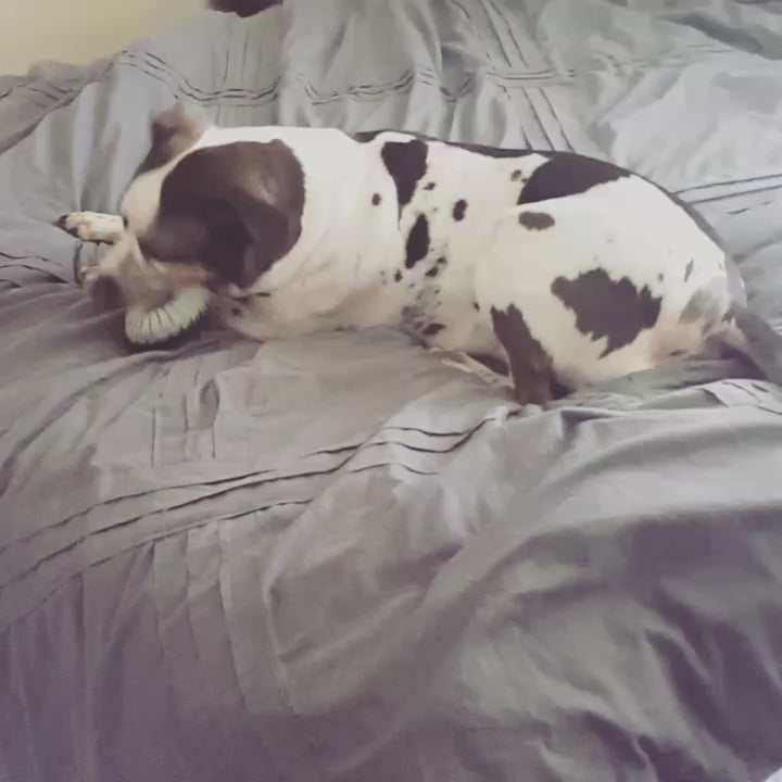 This sweet toy has its squeaker tightly rolled into the doughnut to make it harder for your furry friends to remove.